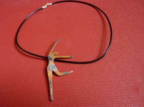 The first item that had me under its spell was this torched copper dancer. It was only available as a pin, but at my request, the artist looped a cord through the backside and instantly transformed it into a pendant.