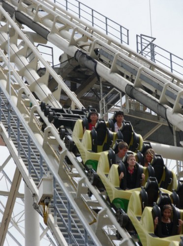 I love loops and corkscrews and all that jazz, and this is nothing new to me. However, what my body was not prepared for was the intense jostling this ride creates once you soar down the first hill. I wanted the ride to be over as soon as it descended, when it started to feel like I was in a car accident rather than on a roller coaster. My whole body was getting knocked around, and it was nothing like the smooth sailing of Medusa Bizarro over at Six Flags Great Adventure, which is one of the most pleasantly thrilling coasters I’ve ever been on. The only redeeming quality the Nor’Easter had was its spectacular view atop the first hill; at the last clackety-clack, you felt like you’d be dropping straight off into the Atlantic Ocean.