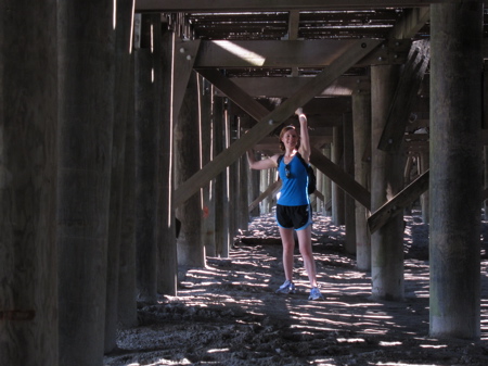 After being out in the sun for so long, Bryan and I beat the heat by escaping under an old pier, enjoying the shade and cool lighting.