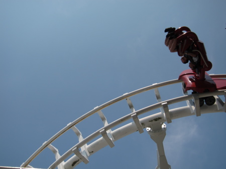 What I soon realized as the cars began to climb several stories up is that I am not a kid anymore. As one who gets nervous walking too close to the balcony rail on the upper level at the mall, I should have known better than to willingly fly high into the sky in a suspended metal cage. Halfway up, I had to squeeze my eyes shut and attempt some deep breathing. The spinning was what was doing me in. Ugh.