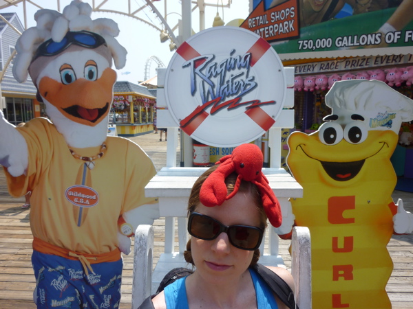 • I celebrated the big 3-0 down the shore with my sis. It was a great lil’ getaway; we went to Wildwood, a shore town we used to frequent annually as kids but then hadn’t been in years. We did some rides, strolled the boards, took goofy pictures, scared ourselves silly riding ducks suspended on an overhead track, took the “back roads”-way home to avoid an accident that left us thinking we accidentally drove into Kansas, and then sat our sandy and sweaty beach butts down at IndeBlue back home for dinner.