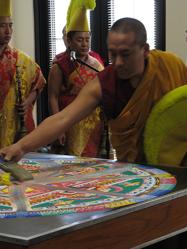 It was a long afternoon—nearly 4 hours of delving deep into our minds and bodies. In a sense, we were a bit like the monks who spend days, even weeks creating the most intricate sand mandalas, grain by grain. When their elaborate creation is completed, the monks essentially destroy it, brushing the sand together and letting it run off into the air or water, a symbolic act representing impermanence while also spreading forth the blessings and energy of the artwork to which they had committed so much attention and mindfulness.